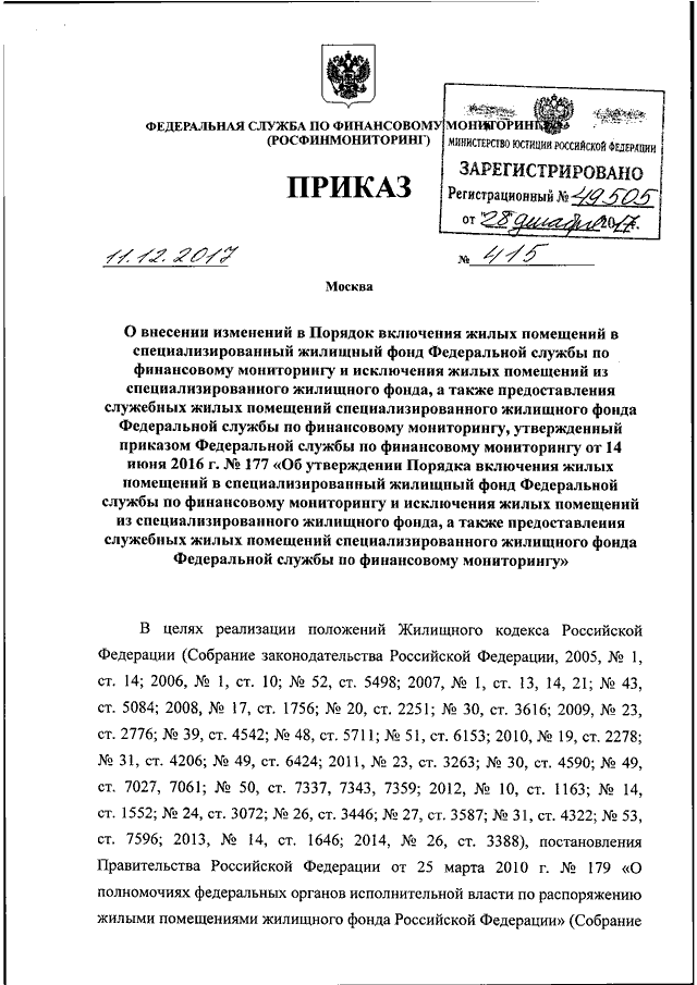 ПРИКАЗ Росфинмониторинга от 11.12.2017 N 415