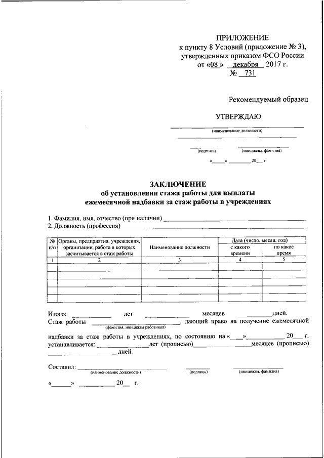ПРИКАЗ ФСО РФ от 08.12.2017 N 731