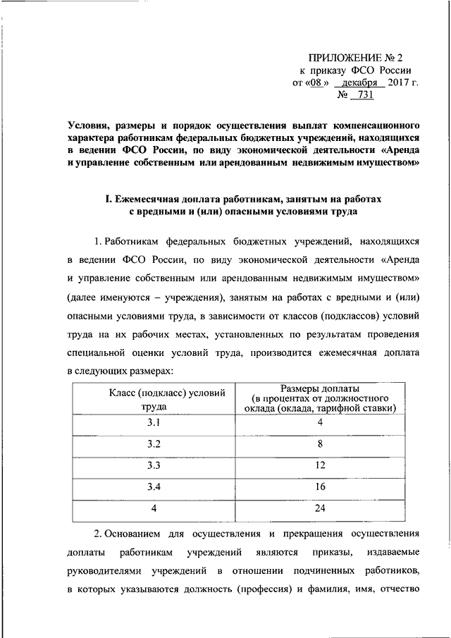 ПРИКАЗ ФСО РФ от 08.12.2017 N 731