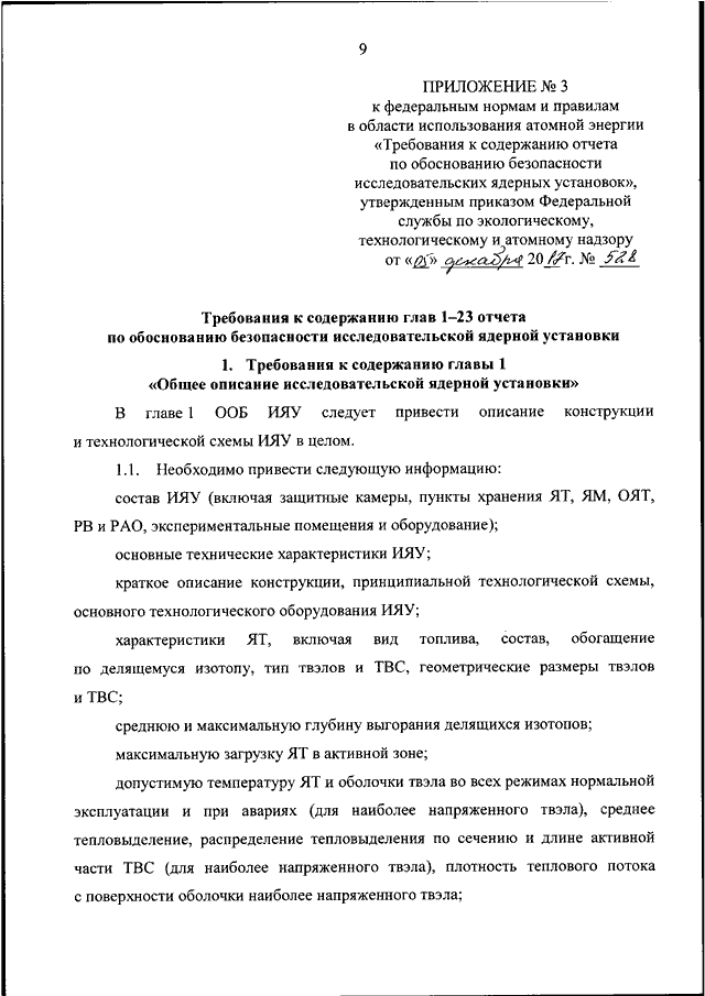 "ОБ УТВЕРЖДЕНИИ ФЕДЕРАЛЬНЫХ НОРМ И ПРАВИЛ В ОБЛАСТИ ИСПОЛЬЗОВАНИЯ АТОМНОЙ ЭНЕРГИИ "ТРЕБОВАНИЯ К СОДЕРЖАНИЮ ОТЧЕТА ПО ОБОСНОВАНИЮ БЕЗОПАСНОСТИ ИССЛЕДОВАТЕЛЬСКИХ ЯДЕРНЫХ УСТАНОВОК"