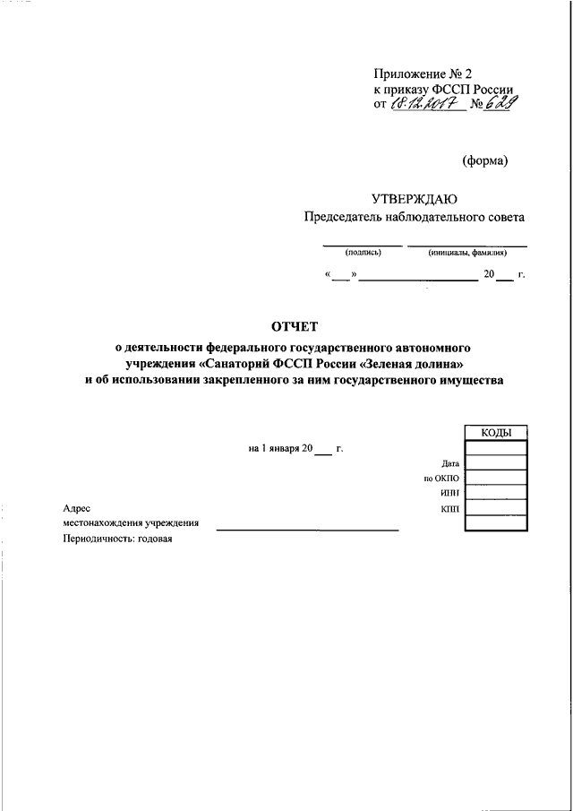 "ОБ УТВЕРЖДЕНИИ ПОРЯДКА СОСТАВЛЕНИЯ И УТВЕРЖДЕНИЯ ОТЧЕТА О РЕЗУЛЬТАТАХ ДЕЯТЕЛЬНОСТИ ФЕДЕРАЛЬНОГО ГОСУДАРСТВЕННОГО АВТОНОМНОГО УЧРЕЖДЕНИЯ "САНАТОРИЙ ФССП РОССИИ "ЗЕЛЕНАЯ ДОЛИНА" И ОБ ИСПОЛЬЗОВАНИИ ЗАКРЕПЛЕННОГО ЗА НИМ ГОСУДАРСТВЕННОГО ИМУЩЕСТВА"
