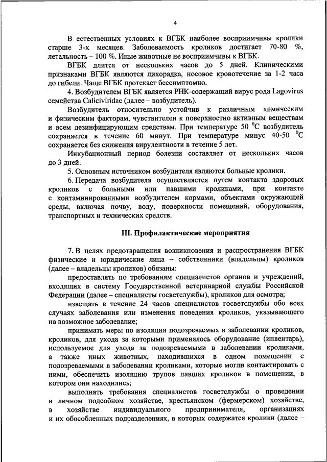 "ОБ УТВЕРЖДЕНИИ ВЕТЕРИНАРНЫХ ПРАВИЛ ОСУЩЕСТВЛЕНИЯ ПРОФИЛАКТИЧЕСКИХ, ДИАГНОСТИЧЕСКИХ, ОГРАНИЧИТЕЛЬНЫХ И ИНЫХ МЕРОПРИЯТИЙ, УСТАНОВЛЕНИЯ И ОТМЕНЫ КАРАНТИНА И ИНЫХ ОГРАНИЧЕНИЙ, НАПРАВЛЕННЫХ НА ПРЕДОТВРАЩЕНИЕ РАСПРОСТРАНЕНИЯ И ЛИКВИДАЦИЮ ОЧАГОВ ВИРУСНОЙ ГЕМОРРАГИЧЕСКОЙ БОЛЕЗНИ КРОЛИКОВ"