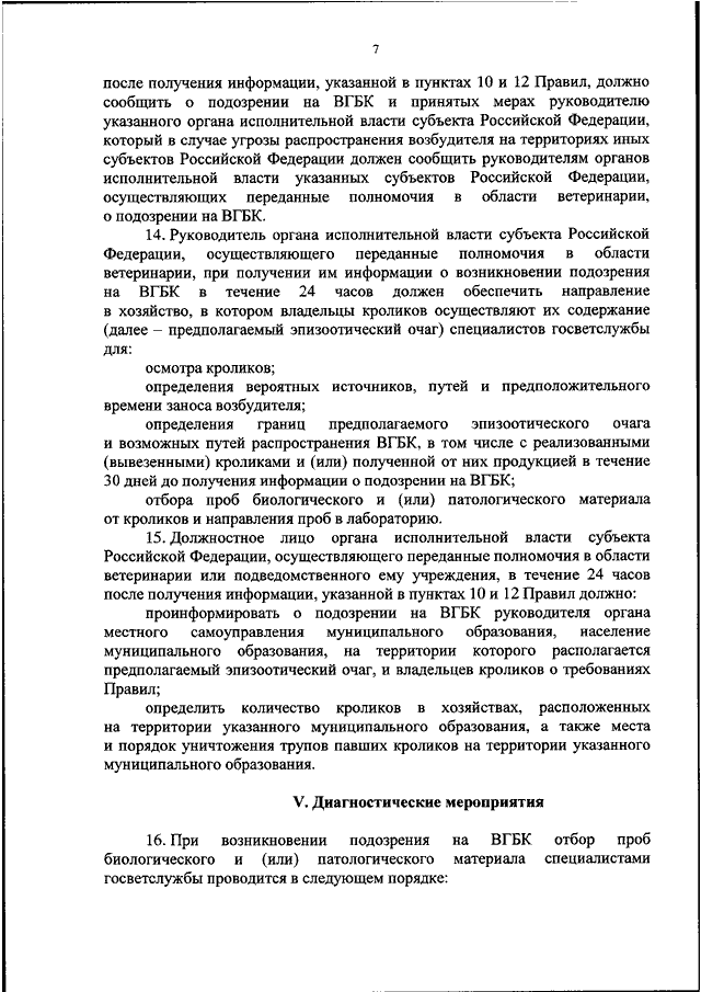 "ОБ УТВЕРЖДЕНИИ ВЕТЕРИНАРНЫХ ПРАВИЛ ОСУЩЕСТВЛЕНИЯ ПРОФИЛАКТИЧЕСКИХ, ДИАГНОСТИЧЕСКИХ, ОГРАНИЧИТЕЛЬНЫХ И ИНЫХ МЕРОПРИЯТИЙ, УСТАНОВЛЕНИЯ И ОТМЕНЫ КАРАНТИНА И ИНЫХ ОГРАНИЧЕНИЙ, НАПРАВЛЕННЫХ НА ПРЕДОТВРАЩЕНИЕ РАСПРОСТРАНЕНИЯ И ЛИКВИДАЦИЮ ОЧАГОВ ВИРУСНОЙ ГЕМОРРАГИЧЕСКОЙ БОЛЕЗНИ КРОЛИКОВ"
