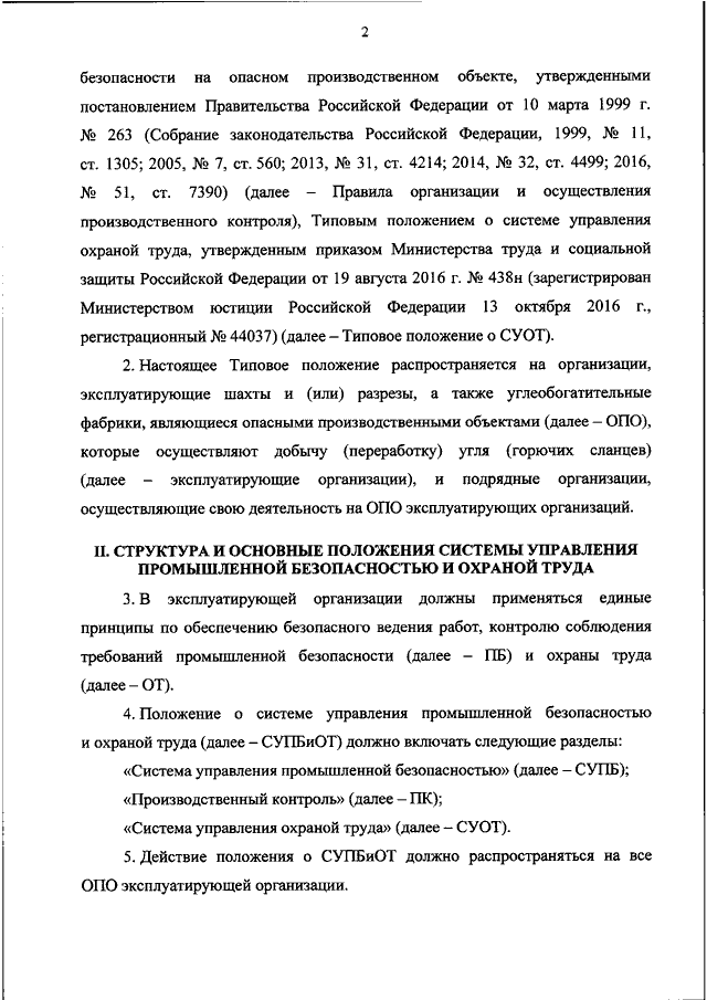 "ОБ УТВЕРЖДЕНИИ ТИПОВОГО ПОЛОЖЕНИЯ О ЕДИНОЙ СИСТЕМЕ УПРАВЛЕНИЯ ПРОМЫШЛЕННОЙ БЕЗОПАСНОСТЬЮ И ОХРАНОЙ ТРУДА ДЛЯ ОРГАНИЗАЦИЙ ПО ДОБЫЧЕ (ПЕРЕРАБОТКЕ) УГЛЯ (ГОРЮЧИХ СЛАНЦЕВ)"