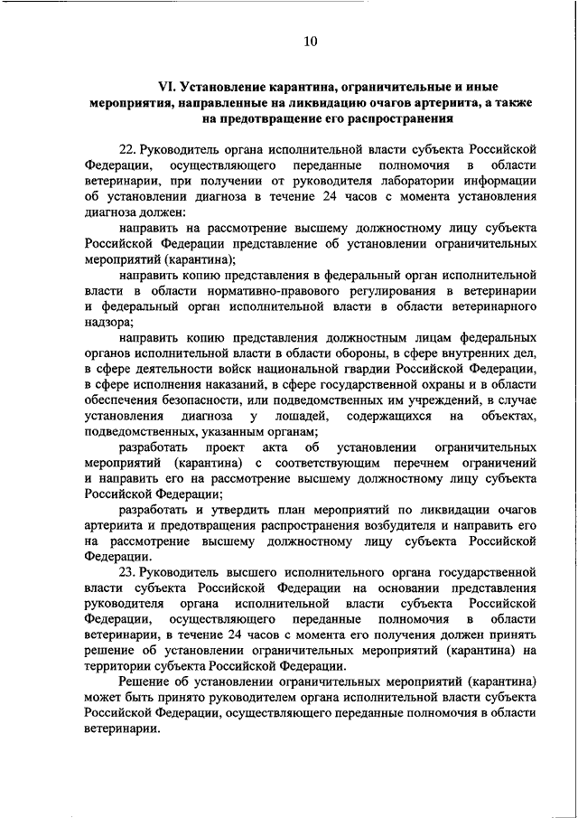 "ОБ УТВЕРЖДЕНИИ ВЕТЕРИНАРНЫХ ПРАВИЛ ОСУЩЕСТВЛЕНИЯ ПРОФИЛАКТИЧЕСКИХ, ДИАГНОСТИЧЕСКИХ, ОГРАНИЧИТЕЛЬНЫХ И ИНЫХ МЕРОПРИЯТИЙ, УСТАНОВЛЕНИЯ И ОТМЕНЫ КАРАНТИНА И ИНЫХ ОГРАНИЧЕНИЙ, НАПРАВЛЕННЫХ НА ПРЕДОТВРАЩЕНИЕ РАСПРОСТРАНЕНИЯ И ЛИКВИДАЦИЮ ОЧАГОВ ВИРУСНОГО АРТЕРИИТА ЛОШАДЕЙ"