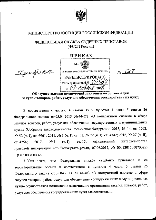 ПРИКАЗ ФССП РФ от 18.12.2017 N 627