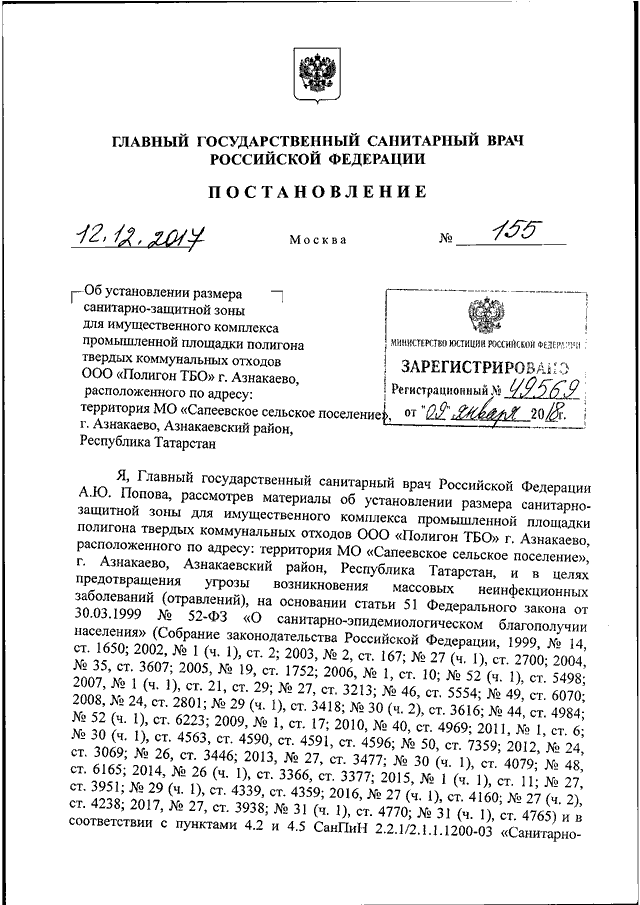 ПОСТАНОВЛЕНИЕ Главного государственного санитарного врача РФ