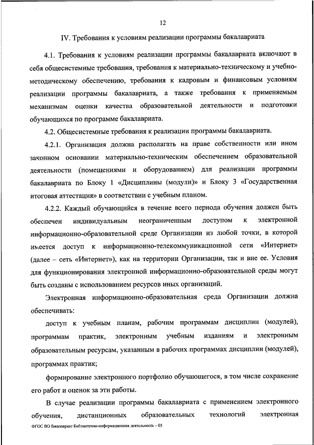 "ОБ УТВЕРЖДЕНИИ ФЕДЕРАЛЬНОГО ГОСУДАРСТВЕННОГО ОБРАЗОВАТЕЛЬНОГО СТАНДАРТА ВЫСШЕГО ОБРАЗОВАНИЯ - БАКАЛАВРИАТ ПО НАПРАВЛЕНИЮ ПОДГОТОВКИ 51.03.06 БИБЛИОТЕЧНО - ИНФОРМАЦИОННАЯ ДЕЯТЕЛЬНОСТЬ"