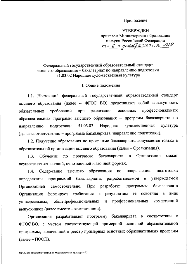 ПРИКАЗ Минобрнауки РФ от 06.12.2017 N 1178