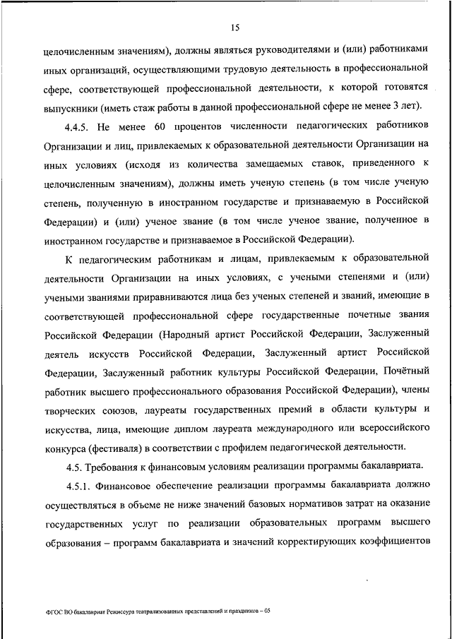 "ОБ УТВЕРЖДЕНИИ ФЕДЕРАЛЬНОГО ГОСУДАРСТВЕННОГО ОБРАЗОВАТЕЛЬНОГО СТАНДАРТА ВЫСШЕГО ОБРАЗОВАНИЯ - БАКАЛАВРИАТ ПО НАПРАВЛЕНИЮ ПОДГОТОВКИ 51.03.05 РЕЖИССУРА ТЕАТРАЛИЗОВАННЫХ ПРЕДСТАВЛЕНИЙ И ПРАЗДНИКОВ"