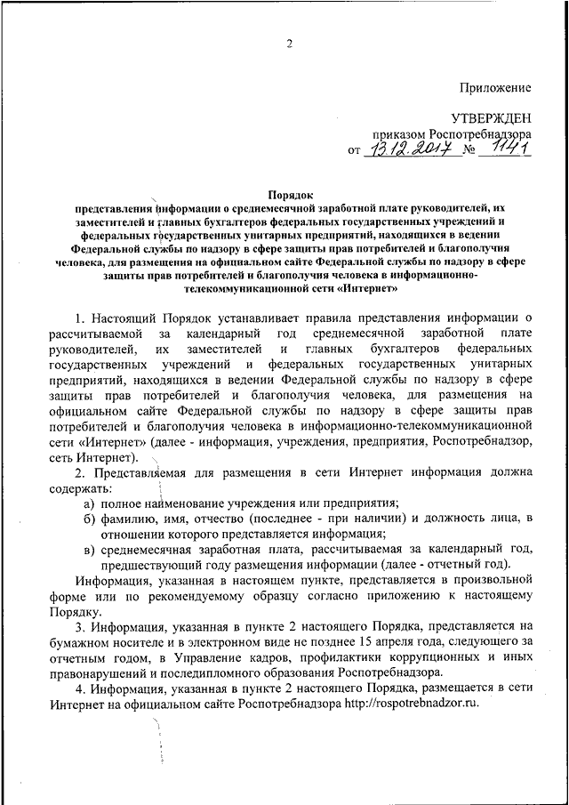 ПРИКАЗ Роспотребнадзора от 13.12.2017 N 1141