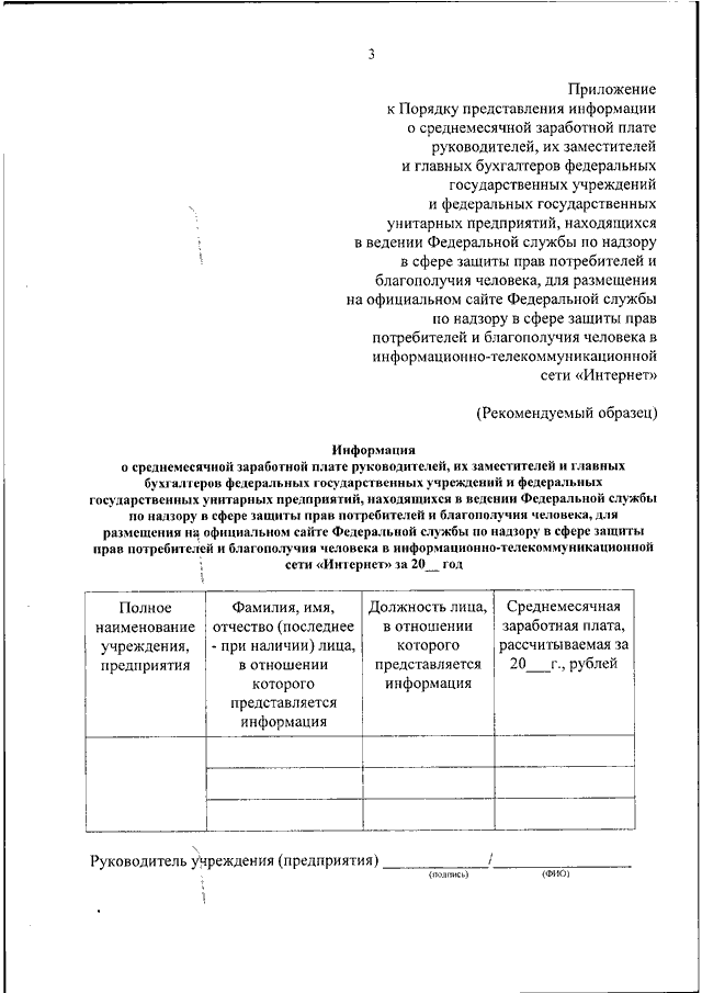 "ОБ УТВЕРЖДЕНИИ ПОРЯДКА ПРЕДСТАВЛЕНИЯ ИНФОРМАЦИИ О СРЕДНЕМЕСЯЧНОЙ ЗАРАБОТНОЙ ПЛАТЕ РУКОВОДИТЕЛЕЙ, ИХ ЗАМЕСТИТЕЛЕЙ И ГЛАВНЫХ БУХГАЛТЕРОВ ФЕДЕРАЛЬНЫХ ГОСУДАРСТВЕННЫХ УЧРЕЖДЕНИЙ И ФЕДЕРАЛЬНЫХ ГОСУДАРСТВЕННЫХ УНИТАРНЫХ ПРЕДПРИЯТИЙ, НАХОДЯЩИХСЯ В ВЕДЕНИИ РОСПОТРЕБНАДЗОРА, ДЛЯ РАЗМЕЩЕНИЯ НА ОФИЦИАЛЬНОМ САЙТЕ РОСПОТРЕБНАДЗОРА В ИНФОРМАЦИОННО - ТЕЛЕКОММУНИКАЦИОННОЙ СЕТИ "ИНТЕРНЕТ"