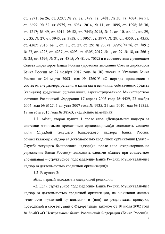 "О ВНЕСЕНИИ ИЗМЕНЕНИЙ В УКАЗАНИЕ БАНКА РОССИИ ОТ 24 МАРТА 2003 Г. N 1260-У "О ПОРЯДКЕ ПРИВЕДЕНИЯ В СООТВЕТСТВИЕ РАЗМЕРА УСТАВНОГО КАПИТАЛА И ВЕЛИЧИНЫ СОБСТВЕННЫХ СРЕДСТВ (КАПИТАЛА) КРЕДИТНЫХ ОРГАНИЗАЦИЙ"