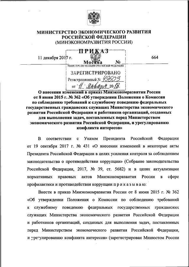 ПРИКАЗ Минэкономразвития РФ от 11.12.2017 N 664