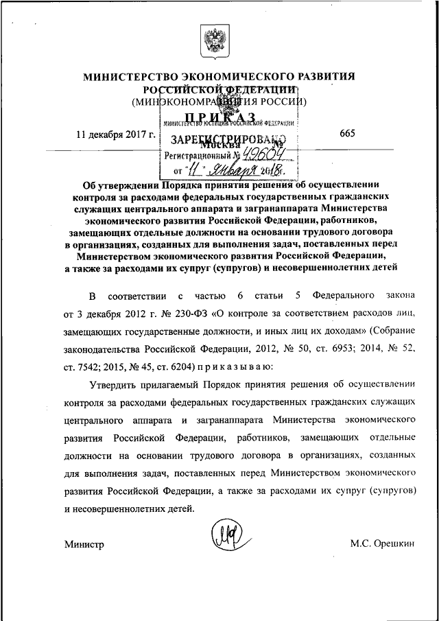 ПРИКАЗ Минэкономразвития РФ от 11.12.2017 N 665