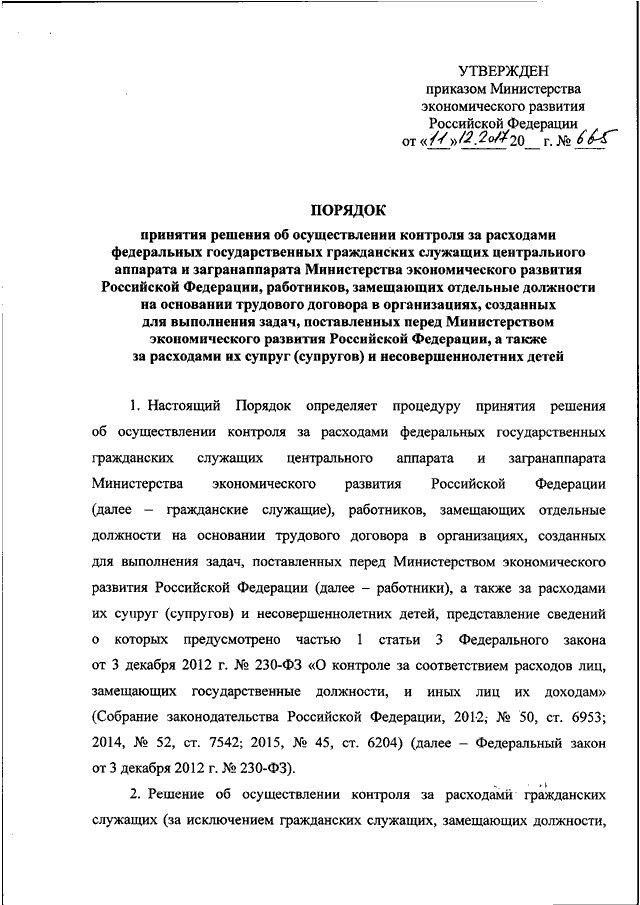 ПРИКАЗ Минэкономразвития РФ от 11.12.2017 N 665