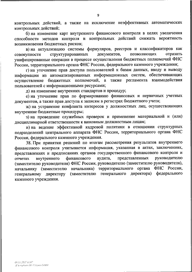 "ОБ УТВЕРЖДЕНИИ ПОРЯДКА ОСУЩЕСТВЛЕНИЯ ВНУТРЕННЕГО ФИНАНСОВОГО КОНТРОЛЯ В ФЕДЕРАЛЬНОЙ НАЛОГОВОЙ СЛУЖБЕ, ЕЕ ТЕРРИТОРИАЛЬНЫХ ОРГАНАХ, ФЕДЕРАЛЬНЫХ КАЗЕННЫХ УЧРЕЖДЕНИЯХ, НАХОДЯЩИХСЯ В ВЕДЕНИИ ФЕДЕРАЛЬНОЙ НАЛОГОВОЙ СЛУЖБЫ"