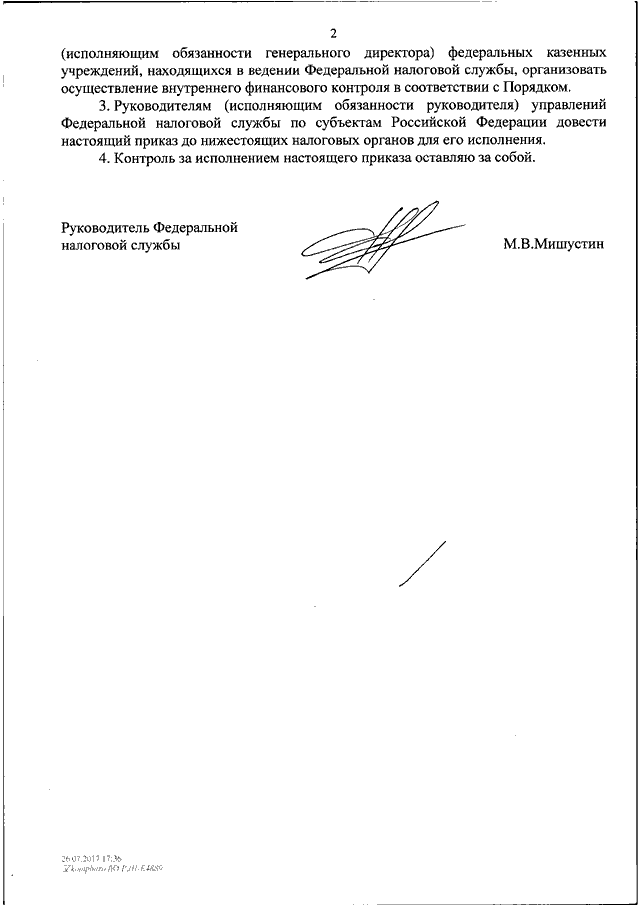 "ОБ УТВЕРЖДЕНИИ ПОРЯДКА ОСУЩЕСТВЛЕНИЯ ВНУТРЕННЕГО ФИНАНСОВОГО КОНТРОЛЯ В ФЕДЕРАЛЬНОЙ НАЛОГОВОЙ СЛУЖБЕ, ЕЕ ТЕРРИТОРИАЛЬНЫХ ОРГАНАХ, ФЕДЕРАЛЬНЫХ КАЗЕННЫХ УЧРЕЖДЕНИЯХ, НАХОДЯЩИХСЯ В ВЕДЕНИИ ФЕДЕРАЛЬНОЙ НАЛОГОВОЙ СЛУЖБЫ"