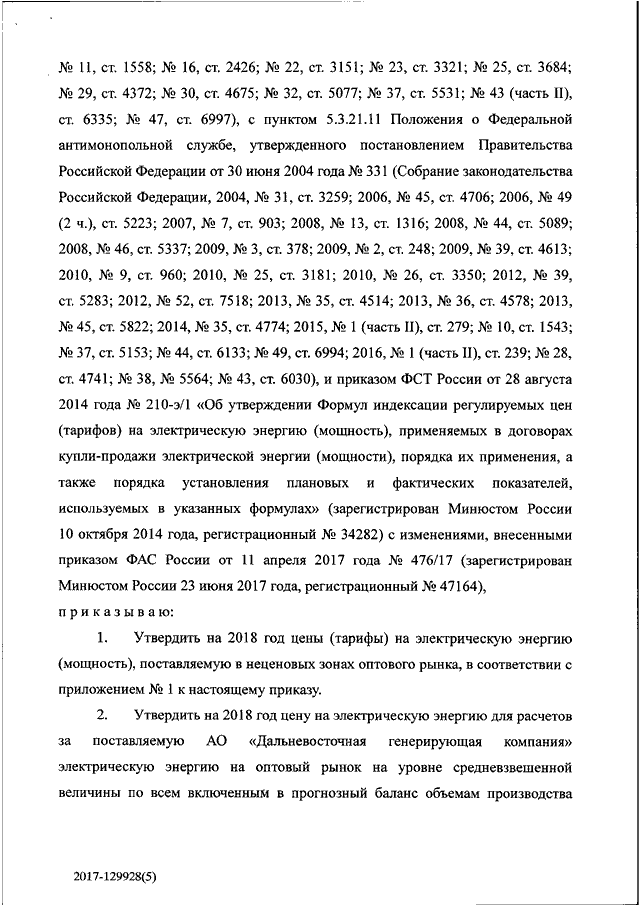 "О ЦЕНАХ (ТАРИФАХ) НА ЭЛЕКТРИЧЕСКУЮ ЭНЕРГИЮ (МОЩНОСТЬ), ПОСТАВЛЯЕМУЮ В НЕЦЕНОВЫХ ЗОНАХ ОПТОВОГО РЫНКА НА 2018 ГОД"