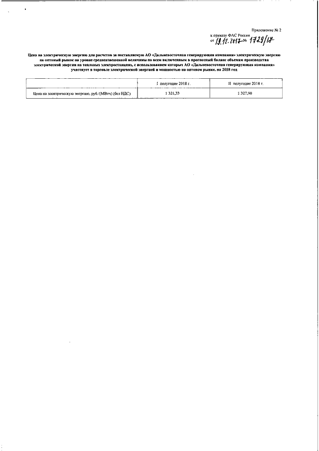 "О ЦЕНАХ (ТАРИФАХ) НА ЭЛЕКТРИЧЕСКУЮ ЭНЕРГИЮ (МОЩНОСТЬ), ПОСТАВЛЯЕМУЮ В НЕЦЕНОВЫХ ЗОНАХ ОПТОВОГО РЫНКА НА 2018 ГОД"