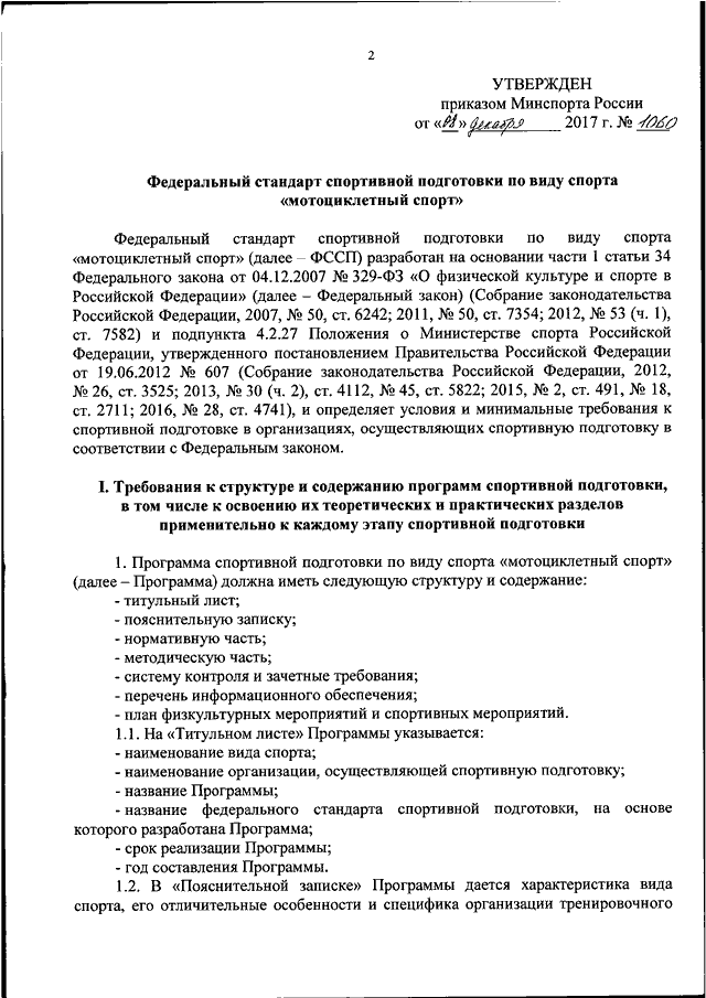 ПРИКАЗ Минспорта РФ от 08.12.2017 N 1060
