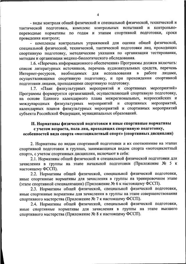 "ОБ УТВЕРЖДЕНИИ ФЕДЕРАЛЬНОГО СТАНДАРТА СПОРТИВНОЙ ПОДГОТОВКИ ПО ВИДУ СПОРТА "МОТОЦИКЛЕТНЫЙ СПОРТ"