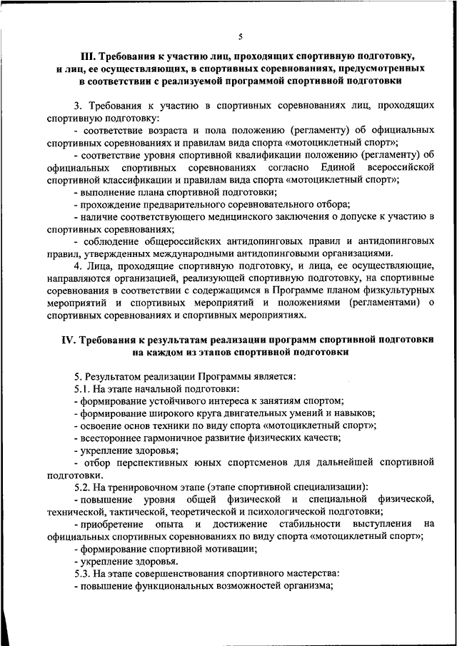 "ОБ УТВЕРЖДЕНИИ ФЕДЕРАЛЬНОГО СТАНДАРТА СПОРТИВНОЙ ПОДГОТОВКИ ПО ВИДУ СПОРТА "МОТОЦИКЛЕТНЫЙ СПОРТ"