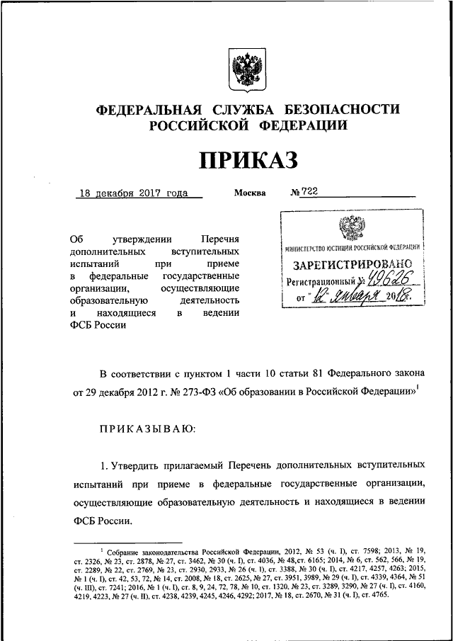 ПРИКАЗ ФСБ РФ от 18.12.2017 N 722