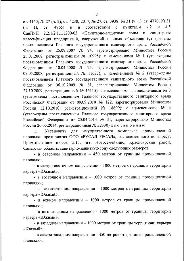 "ОБ УСТАНОВЛЕНИИ РАЗМЕРА САНИТАРНО - ЗАЩИТНОЙ ЗОНЫ ДЛЯ ИМУЩЕСТВЕННОГО КОМПЛЕКСА ПРОМЫШЛЕННОЙ ПЛОЩАДКИ ПРЕДПРИЯТИЯ ООО "РУСАЛ РЕСАЛ", РАСПОЛОЖЕННОГО ПО АДРЕСУ: ПРОМЫШЛЕННОЕ ШОССЕ, Д. 15, ПГТ. НОВОСЕМЕЙКИНО, КРАСНОЯРСКИЙ РАЙОН, САМАРСКАЯ ОБЛАСТЬ"