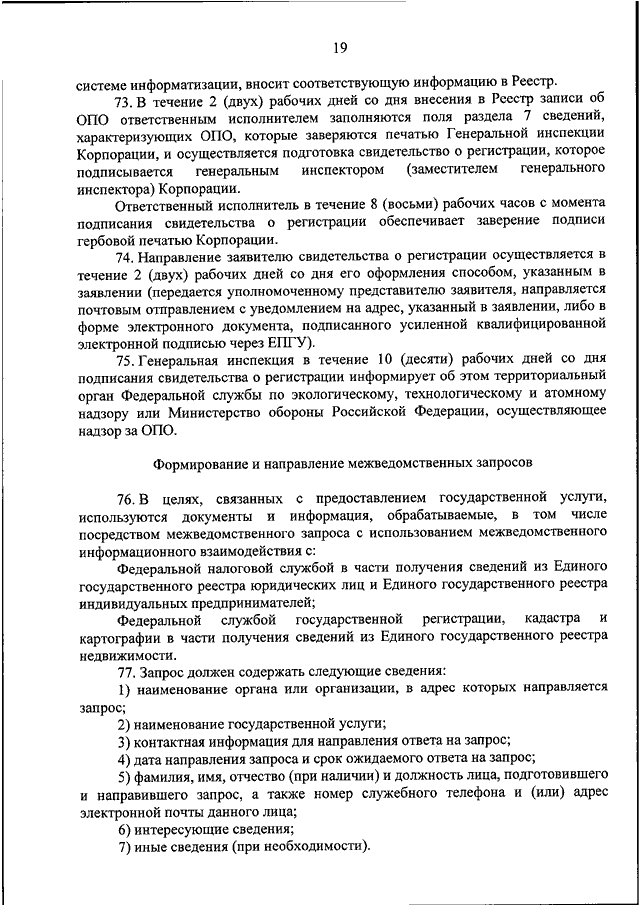 "Росатом" от 18.12.2017 N 1/55-НПА "ОБ УТВЕРЖДЕНИИ АДМИНИСТРАТИВНОГО РЕГЛАМЕНТА ПО ПРЕДОСТАВЛЕНИЮ ГОСУДАРСТВЕННОЙ КОРПОРАЦИЕЙ ПО АТОМНОЙ ЭНЕРГИИ "РОСАТОМ" ГОСУДАРСТВЕННОЙ УСЛУГИ ПО РЕГИСТРАЦИИ ПОДВЕДОМСТВЕННЫХ ОПАСНЫХ ПРОИЗВОДСТВЕННЫХ ОБЪЕКТОВ И ВЕДЕНИЮ ВЕДОМСТВЕННОГО (ОТРАСЛЕВОГО) РАЗДЕЛА ГОСУДАРСТВЕННОГО РЕЕСТРА ОПАСНЫХ ПРОИЗВОДСТВЕННЫХ ОБЪЕКТОВ"