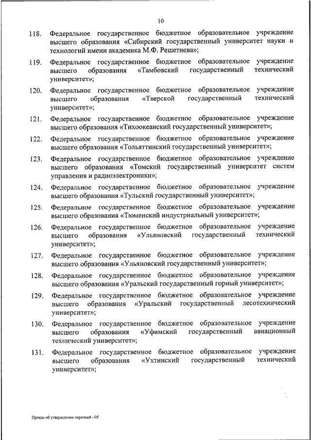 "ОБ УТВЕРЖДЕНИИ ПЕРЕЧНЯ ОБРАЗОВАТЕЛЬНЫХ ОРГАНИЗАЦИЙ, ОСУЩЕСТВЛЯЮЩИХ ПОДГОТОВКУ КАДРОВ СО СРЕДНИМ ПРОФЕССИОНАЛЬНЫМ И ВЫСШИМ ОБРАЗОВАНИЕМ ДЛЯ ОРГАНИЗАЦИЙ ОБОРОННО - ПРОМЫШЛЕННОГО КОМПЛЕКСА"