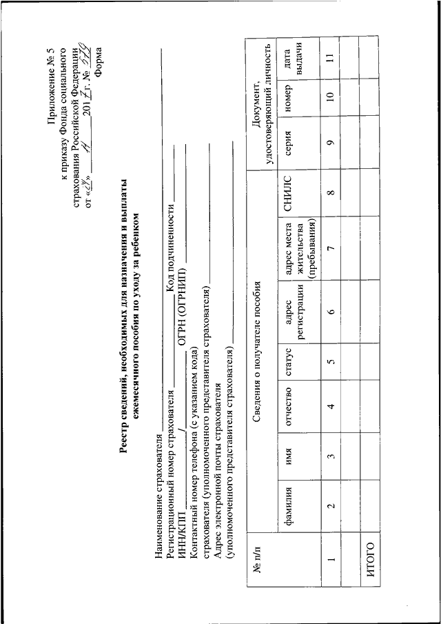 "ОБ УТВЕРЖДЕНИИ ФОРМ РЕЕСТРОВ СВЕДЕНИЙ, НЕОБХОДИМЫХ ДЛЯ НАЗНАЧЕНИЯ И ВЫПЛАТЫ СООТВЕТСТВУЮЩЕГО ВИДА ПОСОБИЯ, И ПОРЯДКОВ ИХ ЗАПОЛНЕНИЯ"