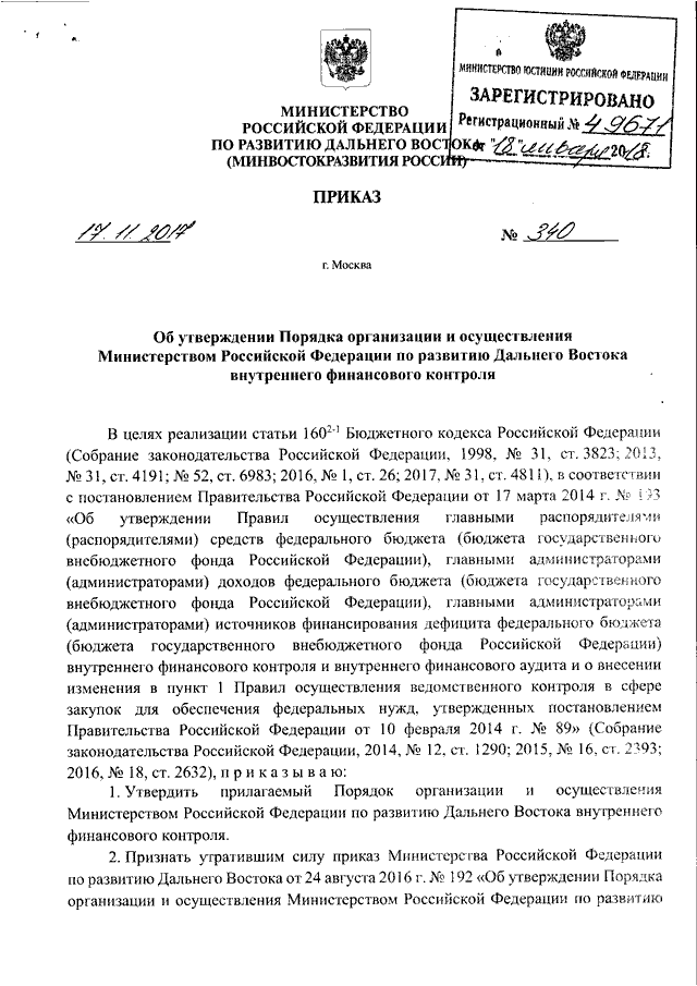 ПРИКАЗ Минвостокразвития РФ от 17.11.2017 N 340
