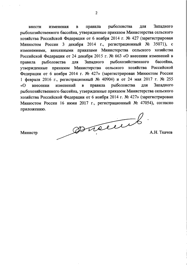 "О ВНЕСЕНИИ ИЗМЕНЕНИЙ В ПРАВИЛА РЫБОЛОВСТВА ДЛЯ ЗАПАДНОГО РЫБОХОЗЯЙСТВЕННОГО БАССЕЙНА, УТВЕРЖДЕННЫЕ ПРИКАЗОМ МИНИСТЕРСТВА СЕЛЬСКОГО ХОЗЯЙСТВА РОССИЙСКОЙ ФЕДЕРАЦИИ ОТ 6 НОЯБРЯ 2014 Г. N 427"