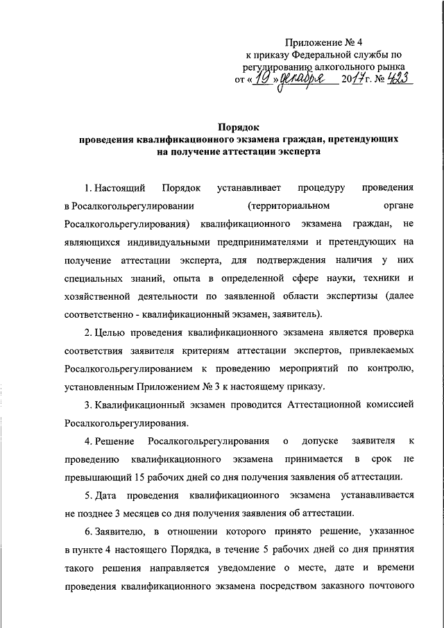 ПРИКАЗ Росалкогольрегулирования от 19.12.2017 N 423