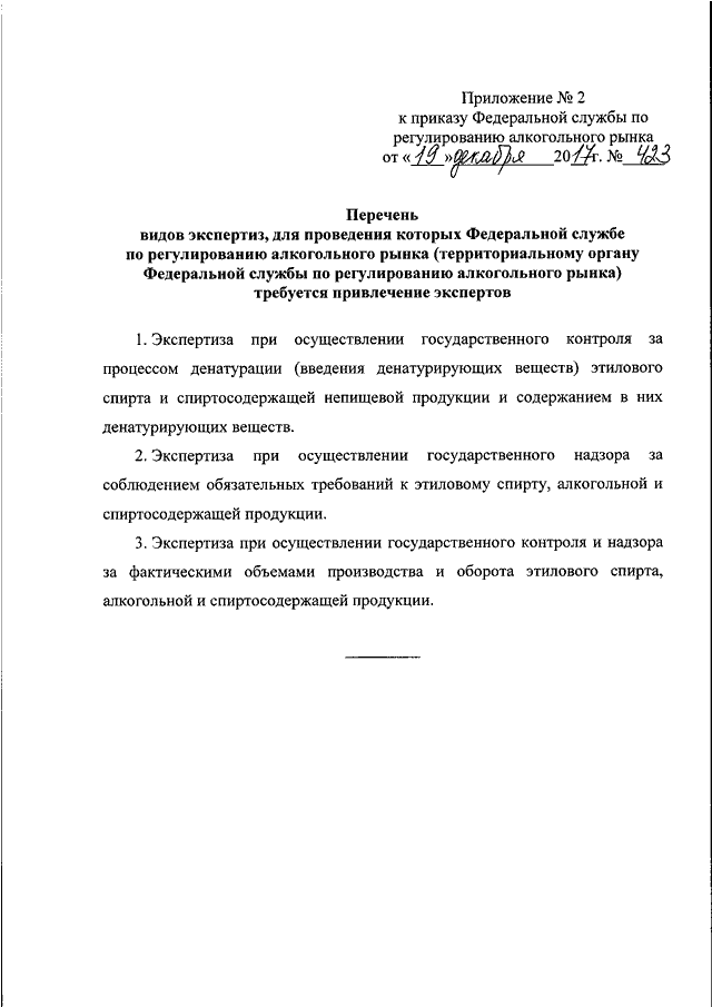 ПРИКАЗ Росалкогольрегулирования от 19.12.2017 N 423