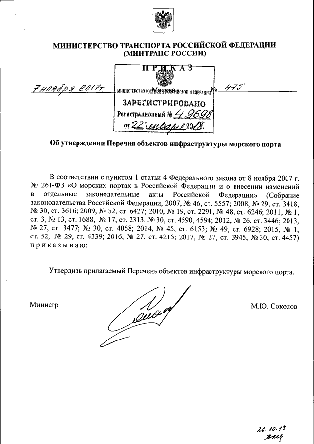 ПРИКАЗ Минтранса РФ от 07.11.2017 N 475