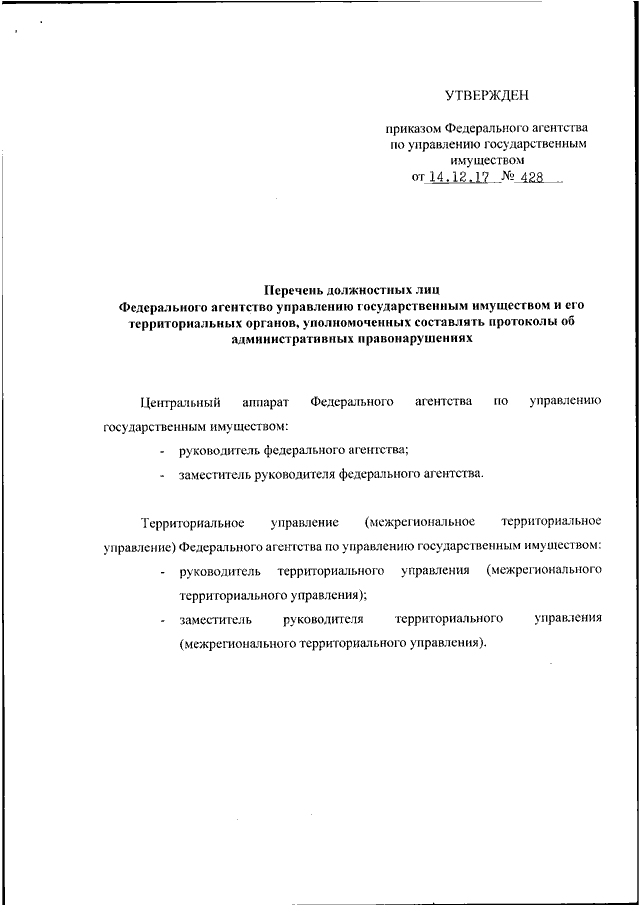 ПРИКАЗ Росимущества от 14.12.2017 N 428