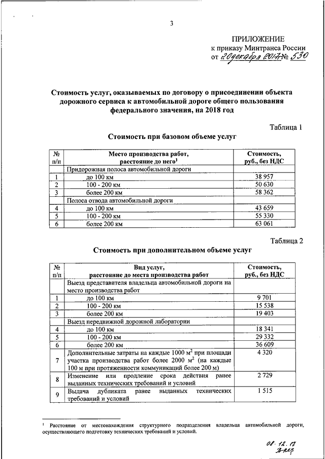 "О СТОИМОСТИ УСЛУГ, ОКАЗЫВАЕМЫХ ПО ДОГОВОРУ О ПРИСОЕДИНЕНИИ ОБЪЕКТА ДОРОЖНОГО СЕРВИСА К АВТОМОБИЛЬНОЙ ДОРОГЕ ОБЩЕГО ПОЛЬЗОВАНИЯ ФЕДЕРАЛЬНОГО ЗНАЧЕНИЯ, НА 2018 ГОД"