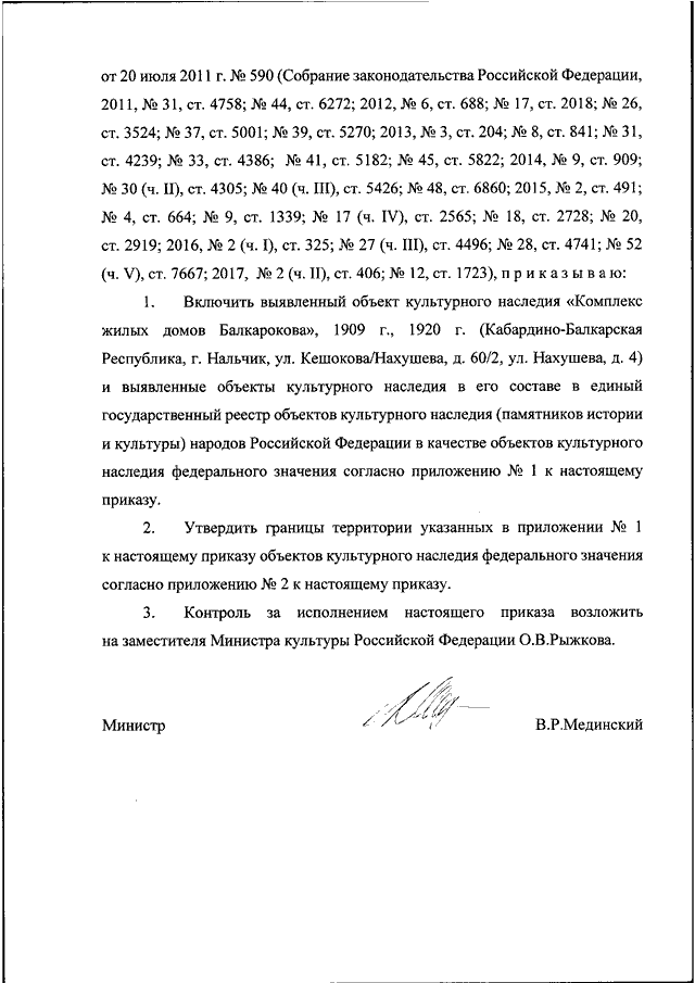 "О ВКЛЮЧЕНИИ ВЫЯВЛЕННОГО ОБЪЕКТА КУЛЬТУРНОГО НАСЛЕДИЯ "КОМПЛЕКС ЖИЛЫХ ДОМОВ БАЛКАРОКОВА", 1909 Г., 1920 Г. И ВЫЯВЛЕННЫХ ОБЪЕКТОВ КУЛЬТУРНОГО НАСЛЕДИЯ В ЕГО СОСТАВЕ (КАБАРДИНО - БАЛКАРСКАЯ РЕСПУБЛИКА) В ЕДИНЫЙ ГОСУДАРСТВЕННЫЙ РЕЕСТР ОБЪЕКТОВ КУЛЬТУРНОГО НАСЛЕДИЯ (ПАМЯТНИКОВ ИСТОРИИ И КУЛЬТУРЫ) НАРОДОВ РОССИЙСКОЙ ФЕДЕРАЦИИ В КАЧЕСТВЕ ОБЪЕКТОВ КУЛЬТУРНОГО НАСЛЕДИЯ ФЕДЕРАЛЬНОГО ЗНАЧЕНИЯ И УТВЕРЖДЕНИИ ГРАНИЦ ИХ ТЕРРИТОРИИ"