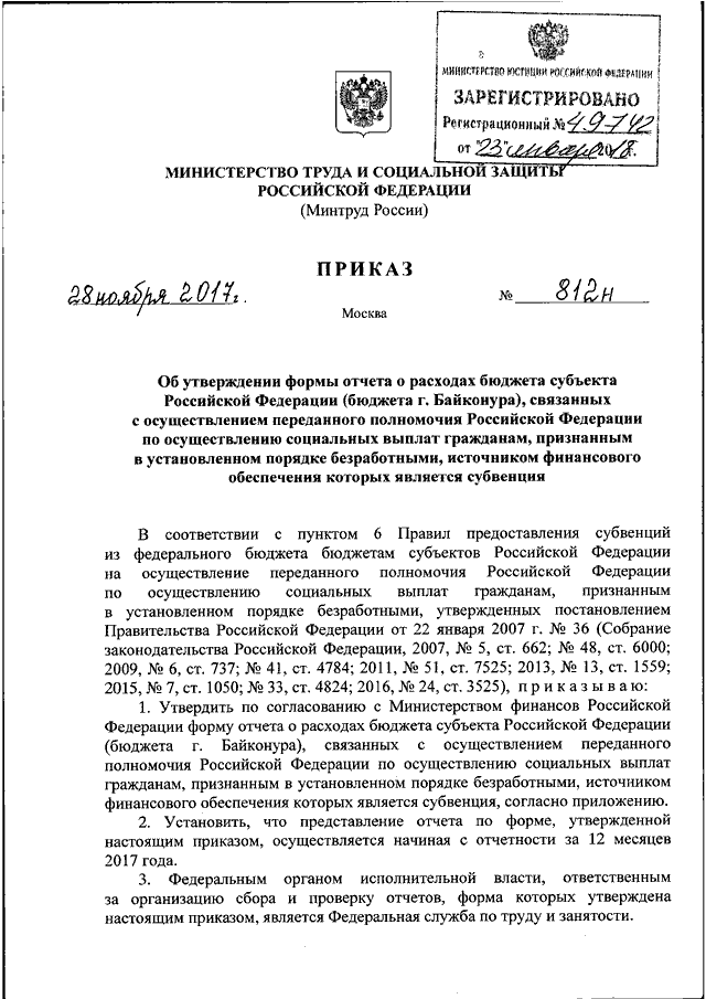 ПРИКАЗ Минтруда РФ от 28.11.2017 N 812н