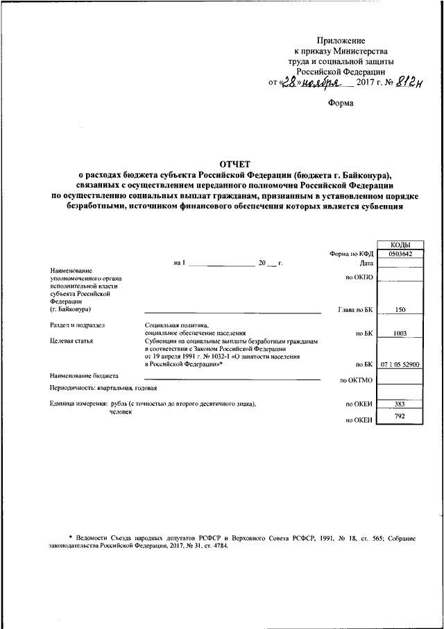 ПРИКАЗ Минтруда РФ от 28.11.2017 N 812н