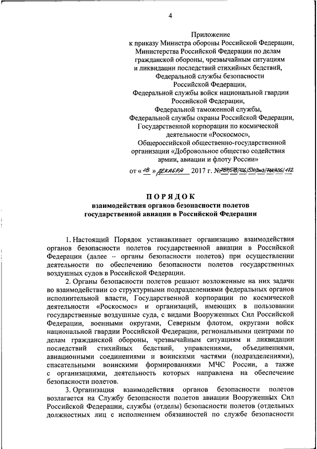 "Роскосмос" N 436, Общероссийской Общественно - государственной организации "Добровольное общество содействия Армии, Авиации и Флоту России" N 172 от 18.12.2017 "ОБ УТВЕРЖДЕНИИ ПОРЯДКА ВЗАИМОДЕЙСТВИЯ ОРГАНОВ БЕЗОПАСНОСТИ ПОЛЕТОВ ГОСУДАРСТВЕННОЙ АВИАЦИИ В РОССИЙСКОЙ ФЕДЕРАЦИИ"