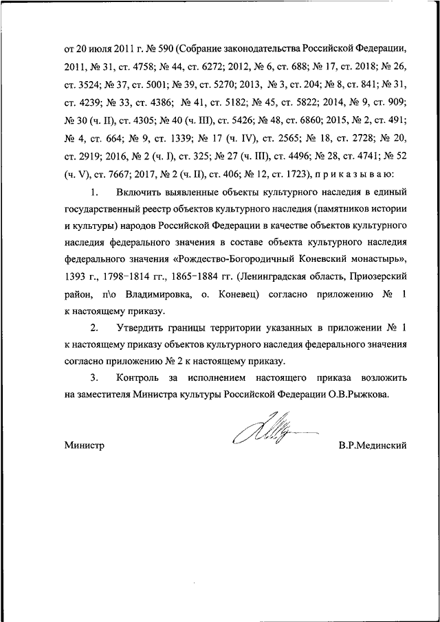 "О ВКЛЮЧЕНИИ ВЫЯВЛЕННЫХ ОБЪЕКТОВ КУЛЬТУРНОГО НАСЛЕДИЯ В ЕДИНЫЙ ГОСУДАРСТВЕННЫЙ РЕЕСТР ОБЪЕКТОВ КУЛЬТУРНОГО НАСЛЕДИЯ (ПАМЯТНИКОВ ИСТОРИИ И КУЛЬТУРЫ) НАРОДОВ РОССИЙСКОЙ ФЕДЕРАЦИИ В КАЧЕСТВЕ ОБЪЕКТОВ КУЛЬТУРНОГО НАСЛЕДИЯ ФЕДЕРАЛЬНОГО ЗНАЧЕНИЯ В СОСТАВЕ ОБЪЕКТА КУЛЬТУРНОГО НАСЛЕДИЯ ФЕДЕРАЛЬНОГО ЗНАЧЕНИЯ "РОЖДЕСТВО - БОГОРОДИЧНЫЙ КОНЕВСКИЙ МОНАСТЫРЬ", 1393 Г., 1798 - 1814 ГГ., 1865 - 1884 ГГ. (ЛЕНИНГРАДСКАЯ ОБЛАСТЬ) И УТВЕРЖДЕНИИ ГРАНИЦ ИХ ТЕРРИТОРИИ"