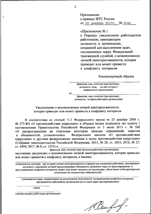 ПРИКАЗ ФТС РФ от 20.12.2017 N 2048