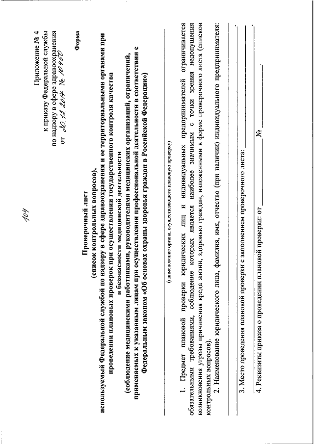 "ОБ УТВЕРЖДЕНИИ ФОРМ ПРОВЕРОЧНЫХ ЛИСТОВ (СПИСКОВ КОНТРОЛЬНЫХ ВОПРОСОВ), ИСПОЛЬЗУЕМЫХ ФЕДЕРАЛЬНОЙ СЛУЖБОЙ ПО НАДЗОРУ В СФЕРЕ ЗДРАВООХРАНЕНИЯ И ЕЕ ТЕРРИТОРИАЛЬНЫМИ ОРГАНАМИ ПРИ ПРОВЕДЕНИИ ПЛАНОВЫХ ПРОВЕРОК ПРИ ОСУЩЕСТВЛЕНИИ ГОСУДАРСТВЕННОГО КОНТРОЛЯ КАЧЕСТВА И БЕЗОПАСНОСТИ МЕДИЦИНСКОЙ ДЕЯТЕЛЬНОСТИ"