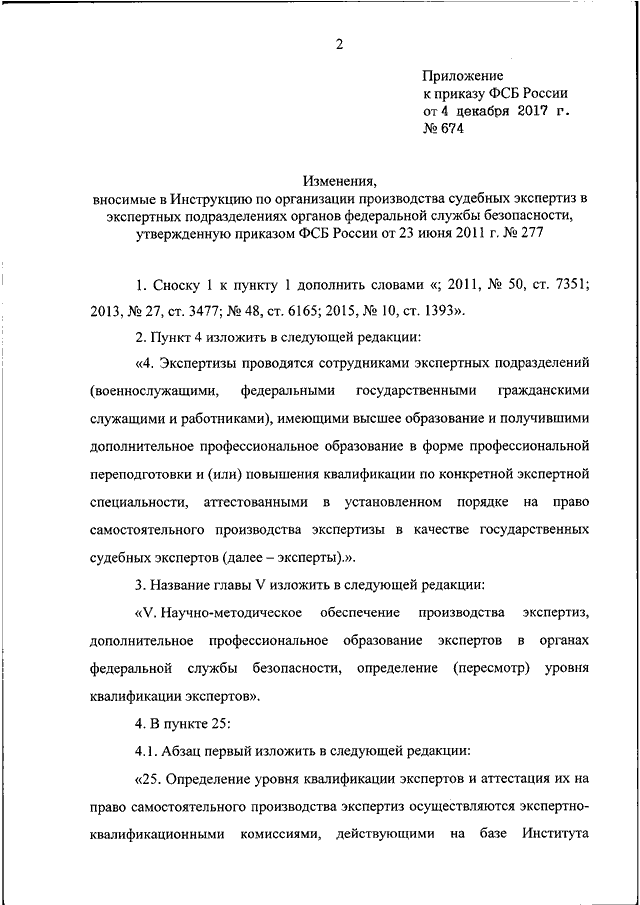 "О ВНЕСЕНИИ ИЗМЕНЕНИЙ В ИНСТРУКЦИЮ ПО ОРГАНИЗАЦИИ ПРОИЗВОДСТВА СУДЕБНЫХ ЭКСПЕРТИЗ В ЭКСПЕРТНЫХ ПОДРАЗДЕЛЕНИЯХ ОРГАНОВ ФЕДЕРАЛЬНОЙ СЛУЖБЫ БЕЗОПАСНОСТИ, УТВЕРЖДЕННУЮ ПРИКАЗОМ ФСБ РОССИИ ОТ 23 ИЮНЯ 2011 Г. N 277"