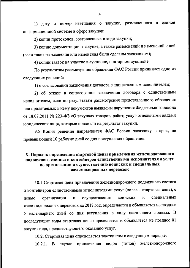 "ОБ УТВЕРЖДЕНИИ ПОРЯДКА ПРОВЕДЕНИЯ АУКЦИОНА ПО ПРИВЛЕЧЕНИЮ ЖЕЛЕЗНОДОРОЖНОГО ПОДВИЖНОГО СОСТАВА И КОНТЕЙНЕРОВ ЕДИНСТВЕННЫМИ ИСПОЛНИТЕЛЯМИ УСЛУГ ПО ОРГАНИЗАЦИИ И ОСУЩЕСТВЛЕНИЮ ВОИНСКИХ И СПЕЦИАЛЬНЫХ ЖЕЛЕЗНОДОРОЖНЫХ ПЕРЕВОЗОК, ВКЛЮЧАЯ ПОРЯДОК ОПРЕДЕЛЕНИЯ СТАРТОВОЙ ЦЕНЫ ПРИВЛЕЧЕНИЯ ЖЕЛЕЗНОДОРОЖНОГО ПОДВИЖНОГО СОСТАВА И КОНТЕЙНЕРОВ"