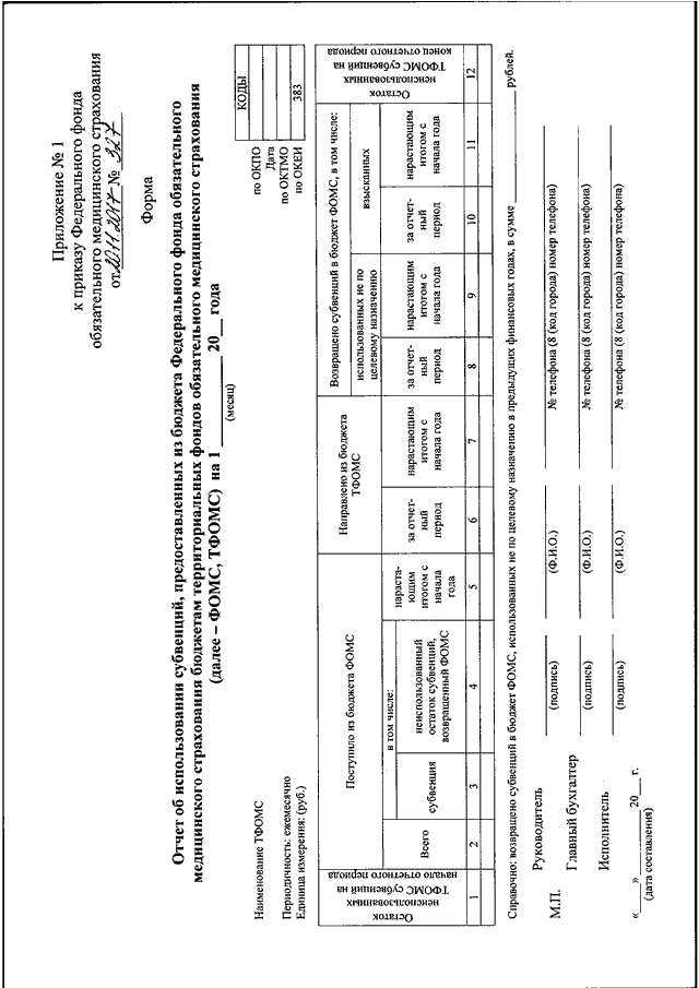 "ОБ УТВЕРЖДЕНИИ ФОРМЫ И ПОРЯДКА ПРЕДОСТАВЛЕНИЯ ОТЧЕТА ОБ ИСПОЛЬЗОВАНИИ СУБВЕНЦИЙ, ПРЕДОСТАВЛЕННЫХ ИЗ БЮДЖЕТА ФЕДЕРАЛЬНОГО ФОНДА ОБЯЗАТЕЛЬНОГО МЕДИЦИНСКОГО СТРАХОВАНИЯ БЮДЖЕТАМ ТЕРРИТОРИАЛЬНЫХ ФОНДОВ ОБЯЗАТЕЛЬНОГО МЕДИЦИНСКОГО СТРАХОВАНИЯ"
