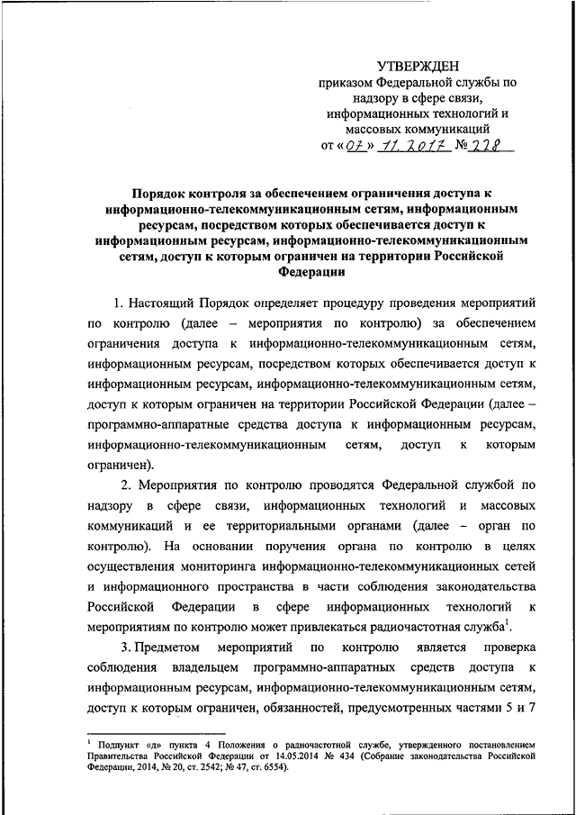 ПРИКАЗ Роскомнадзора от 07.11.2017 N 228